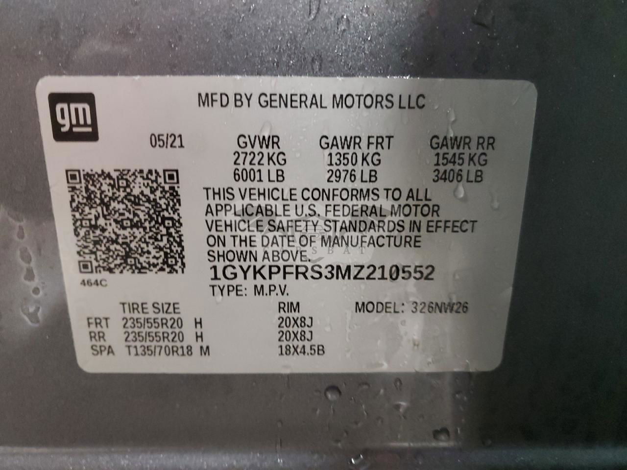 • VIN: 1GYKPFRS3MZ210552