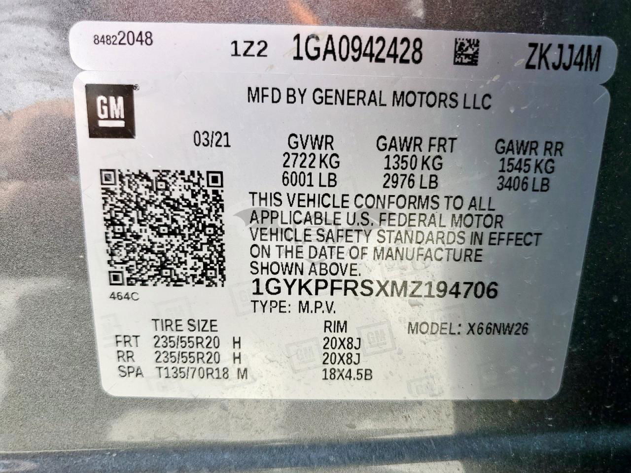 • VIN: 1GYKPFRSXMZ194706