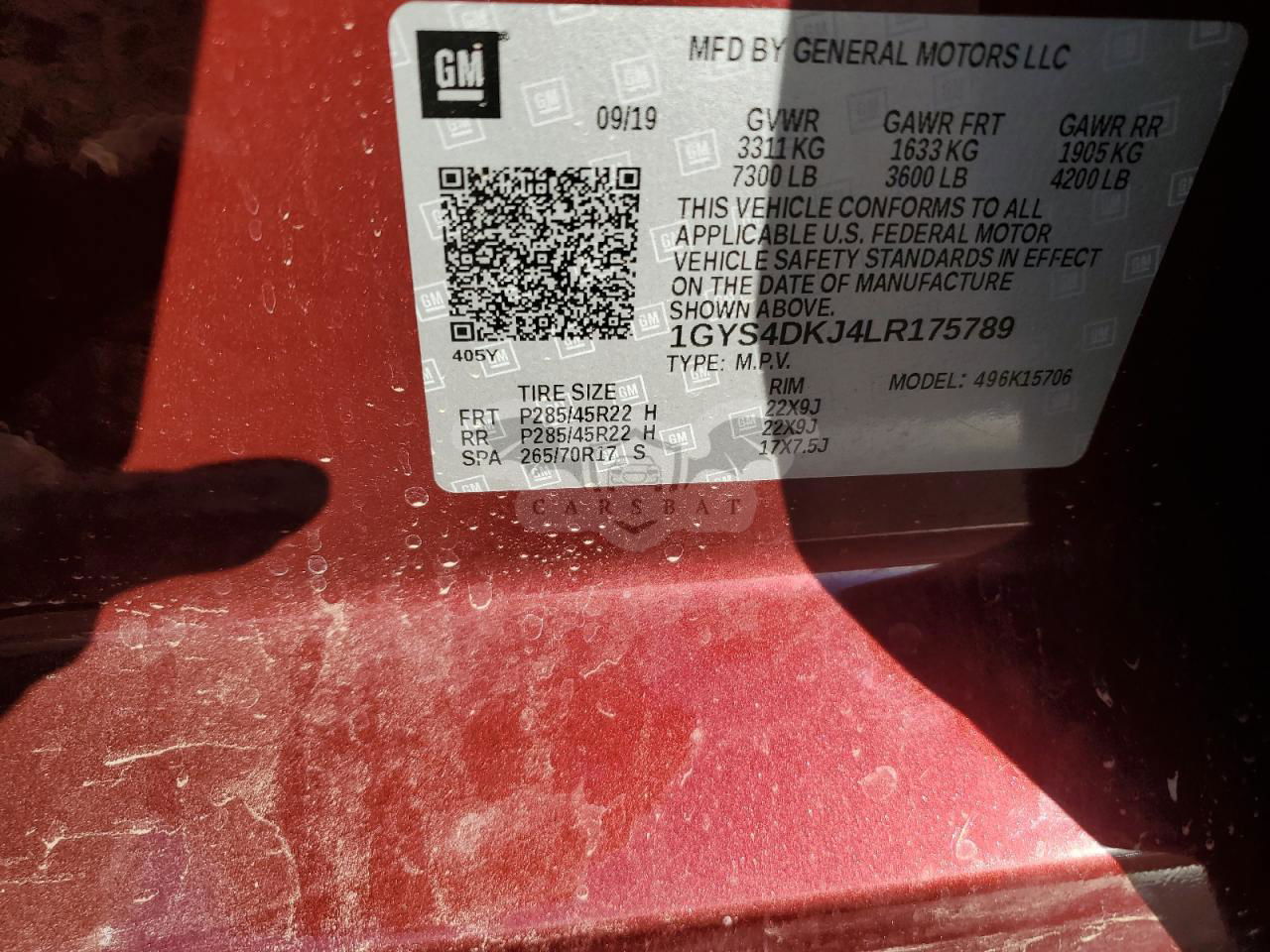 • VIN: 1GYS4DKJ4LR175789