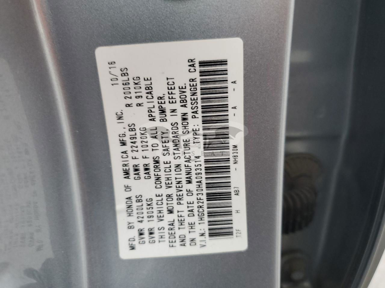 • VIN: 1HGCR2F30HA093514