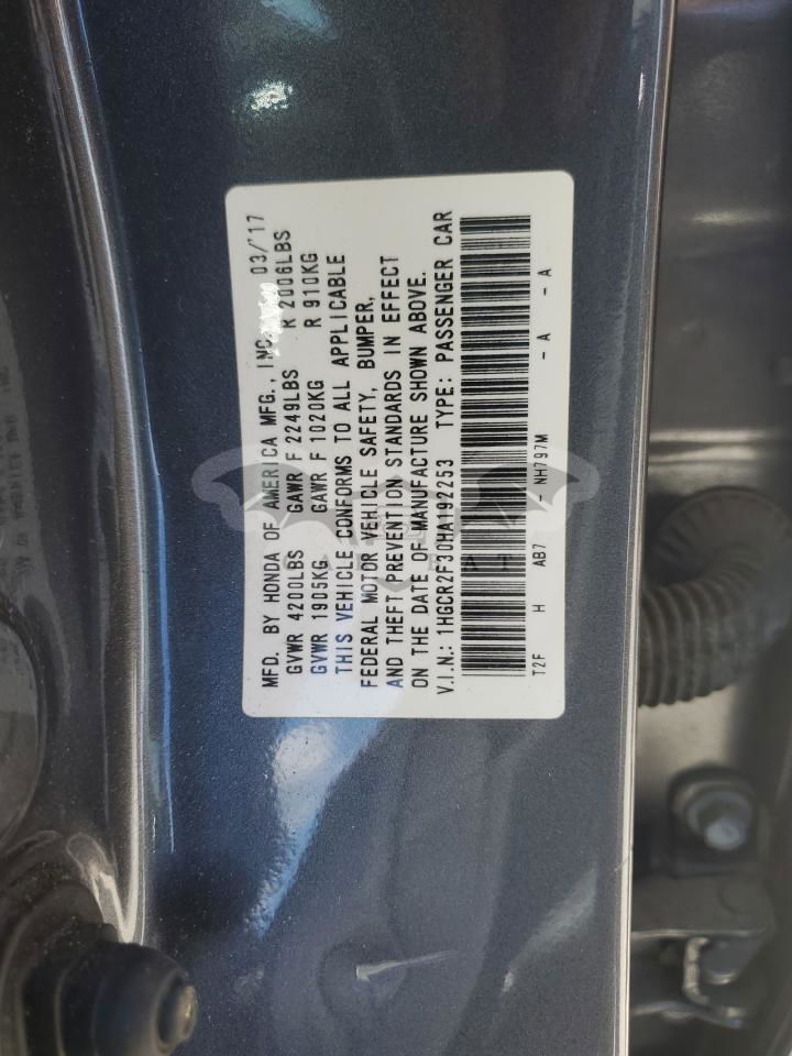 • VIN: 1HGCR2F30HA192253