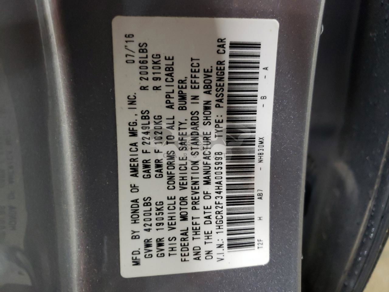 • VIN: 1HGCR2F34HA005998