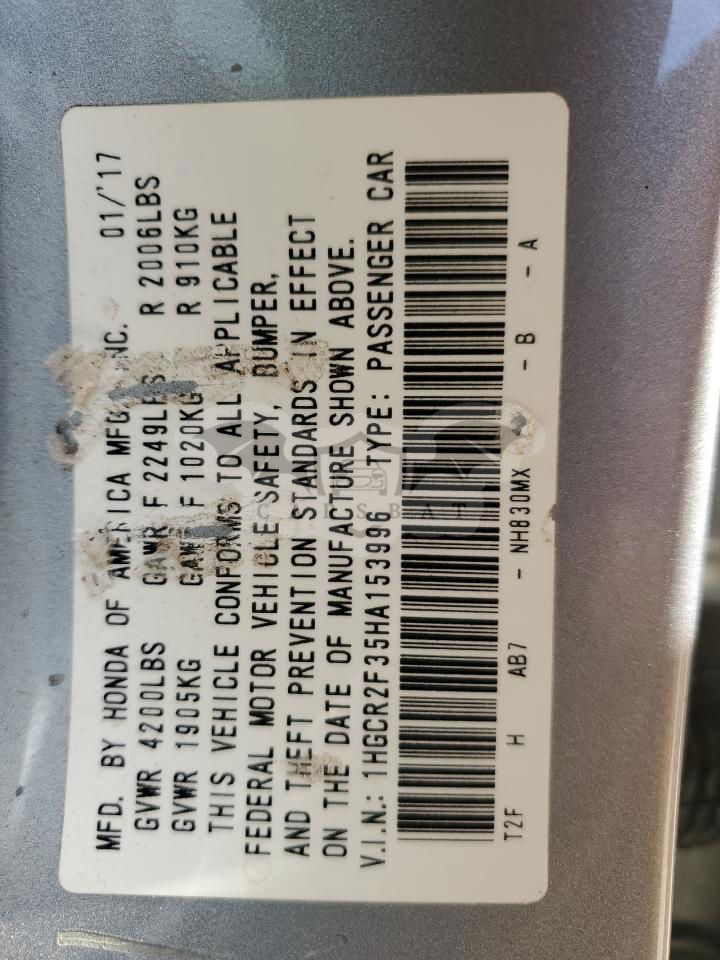 • VIN: 1HGCR2F35HA153996