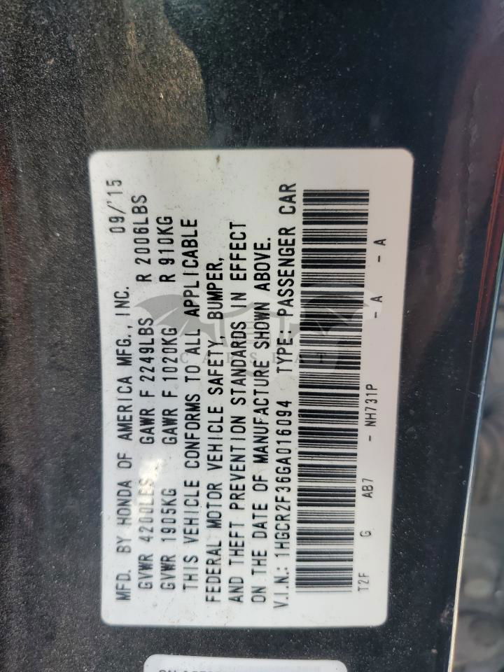 • VIN: 1HGCR2F36GA016094