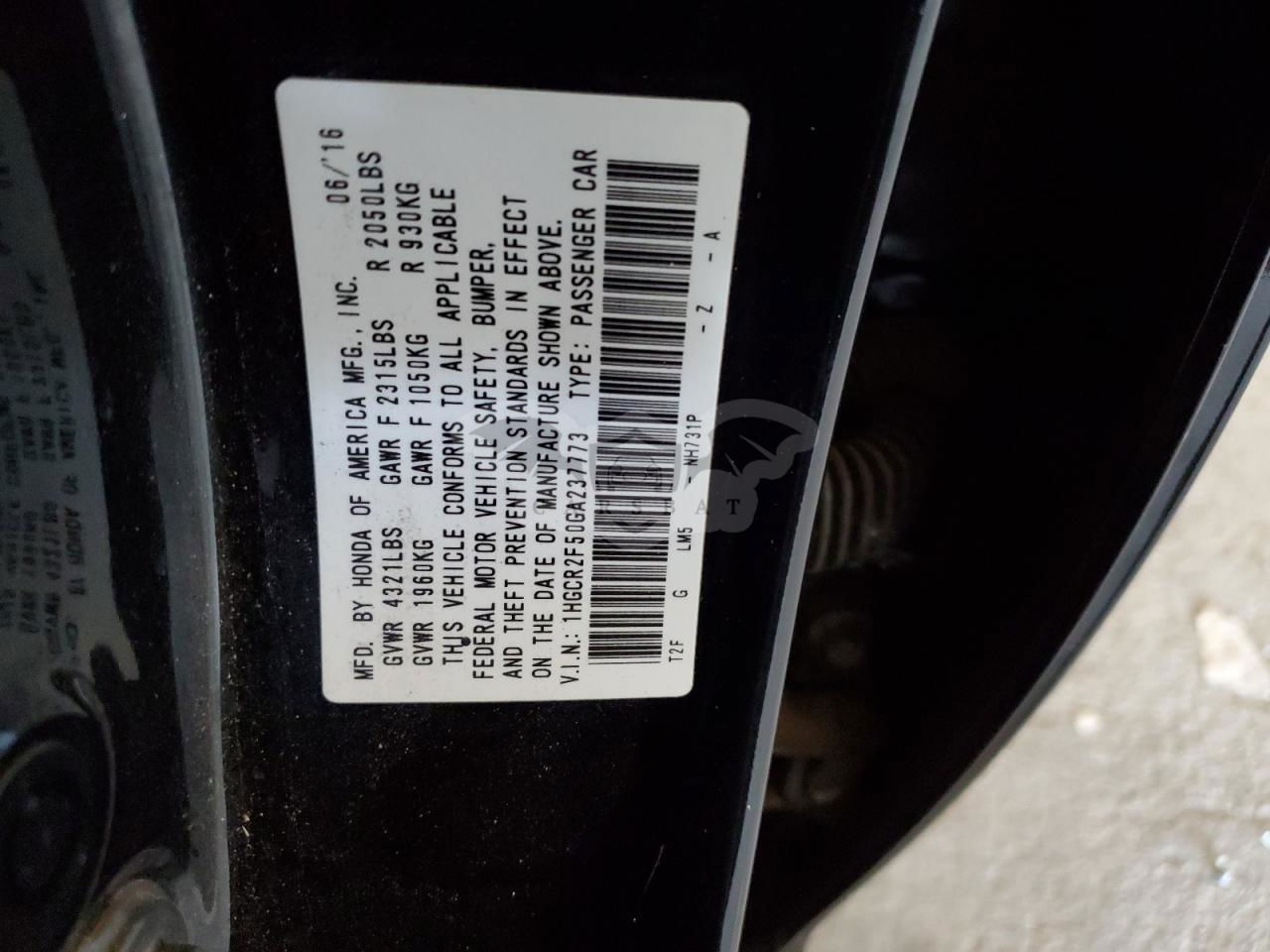 • VIN: 1HGCR2F50GA237773