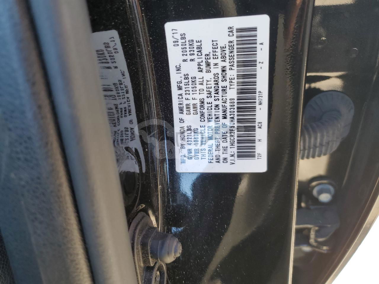 • VIN: 1HGCR2F50HA303689