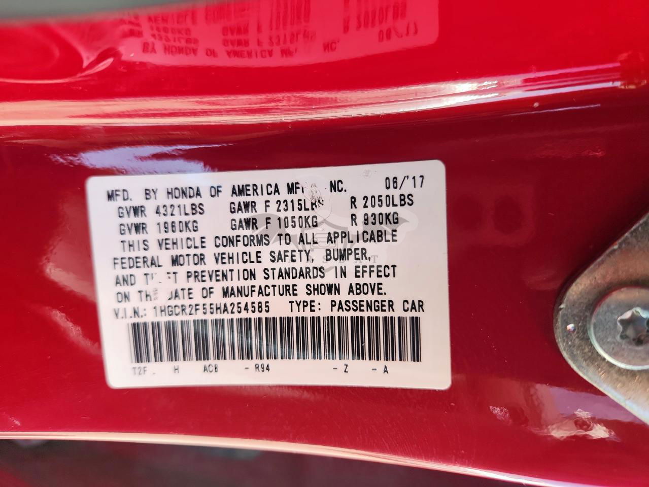 • VIN: 1HGCR2F55HA254585