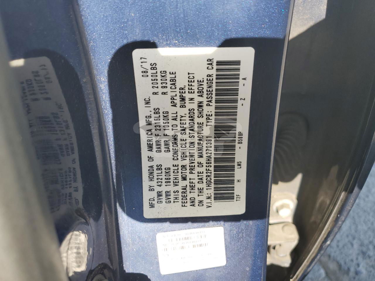 • VIN: 1HGCR2F56HA270391