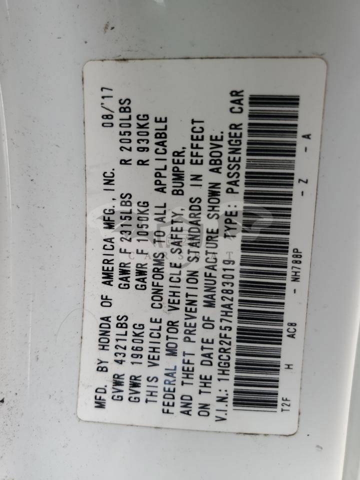 • VIN: 1HGCR2F57HA283019