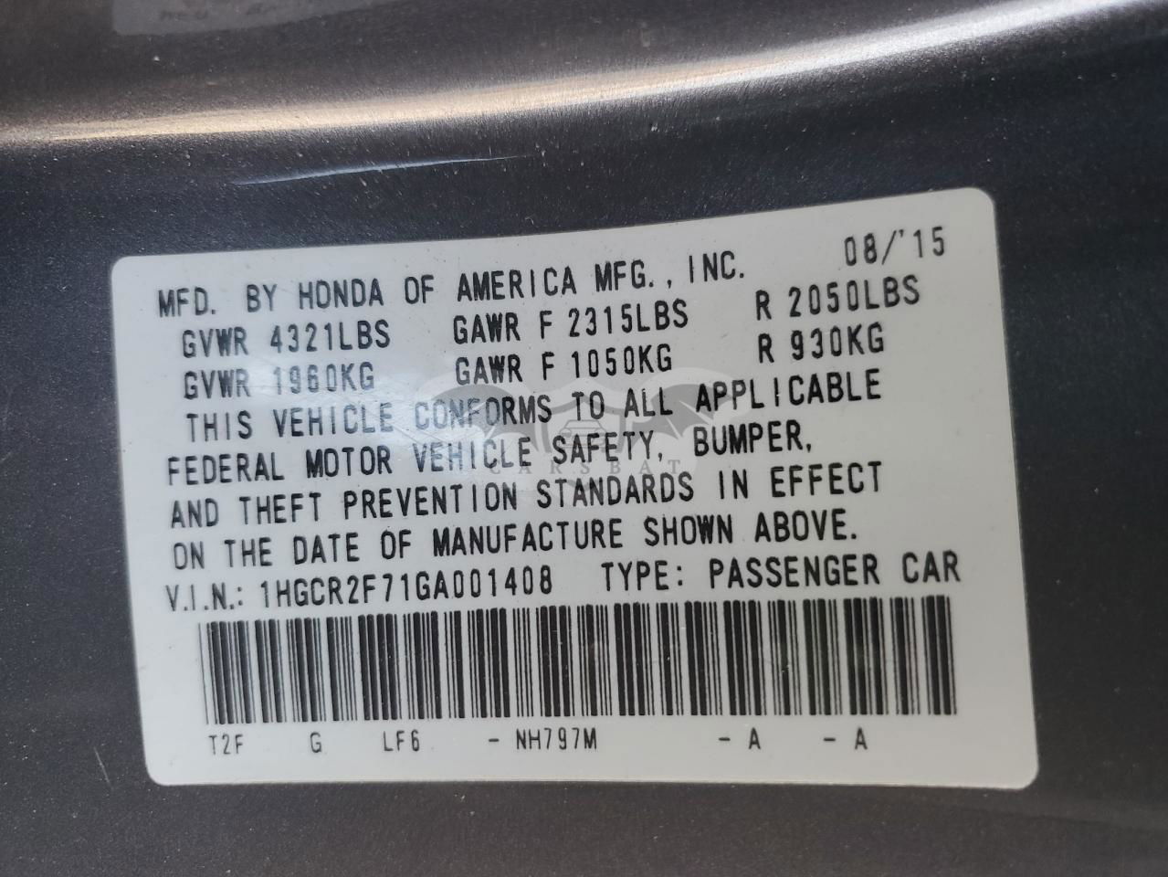 • VIN: 1HGCR2F71GA001408