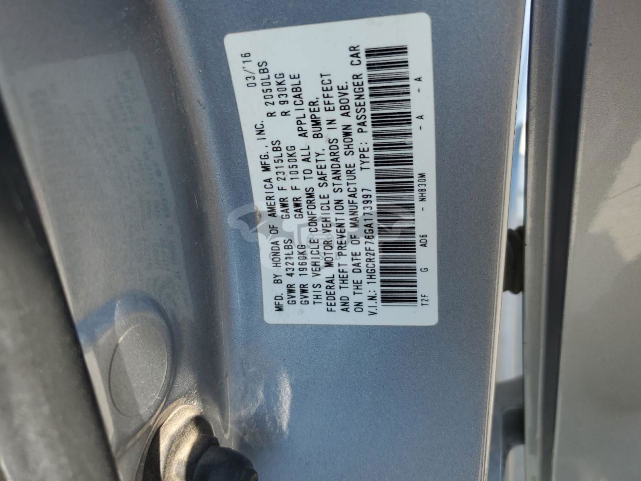 • VIN: 1HGCR2F76GA173997
