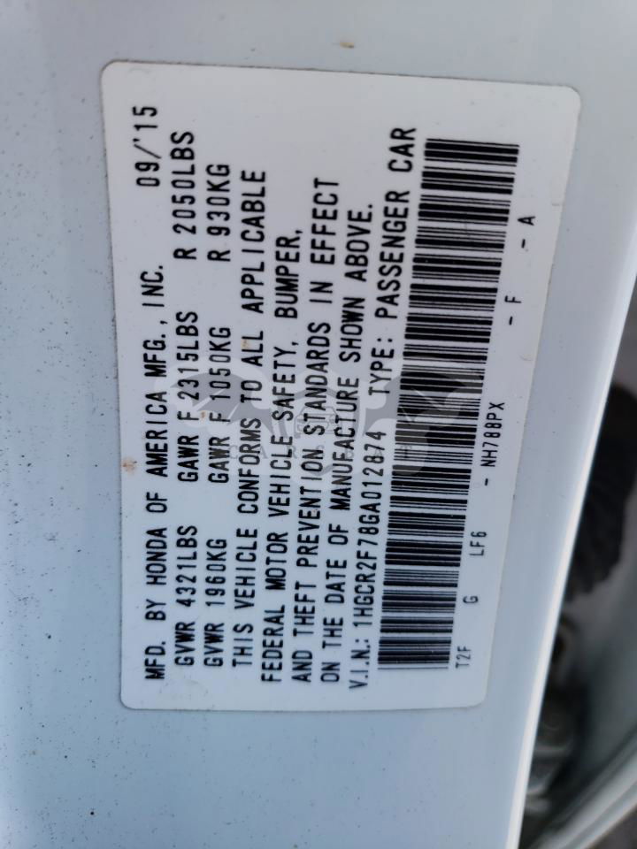 • VIN: 1HGCR2F78GA012874