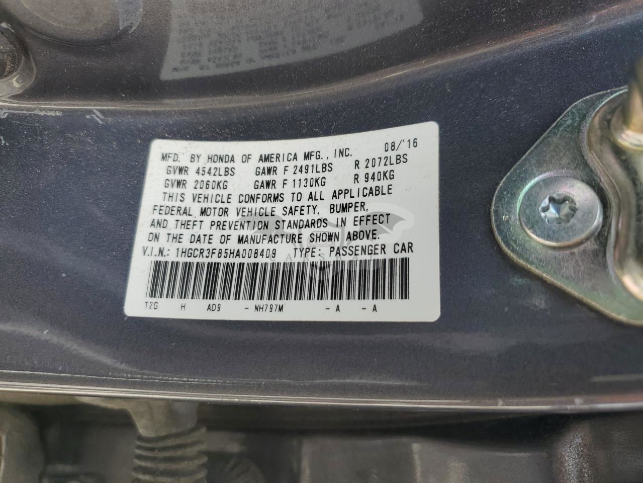 • VIN: 1HGCR3F85HA008409