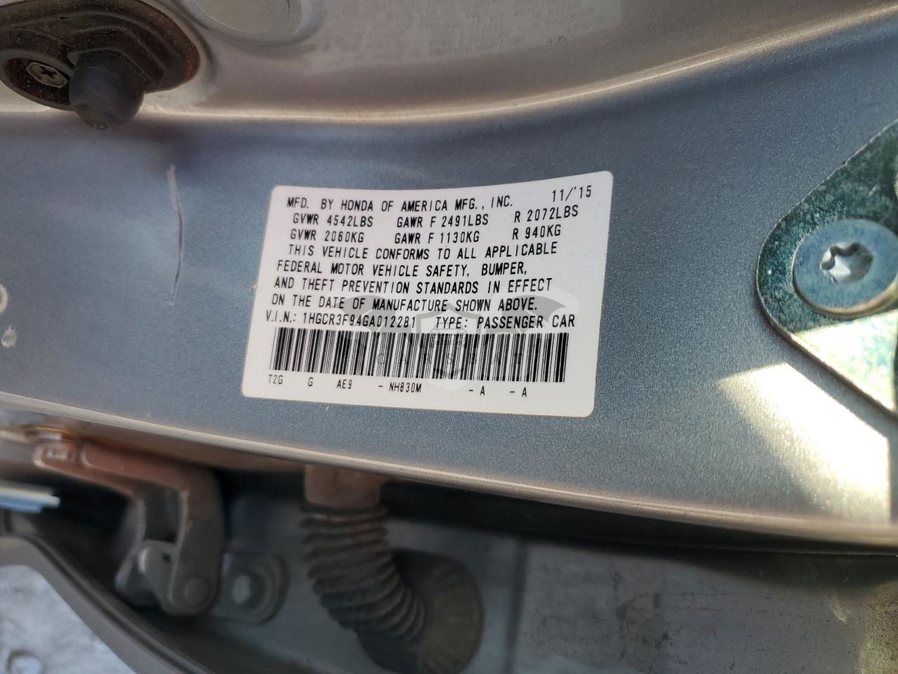 • VIN: 1HGCR3F94GA012281