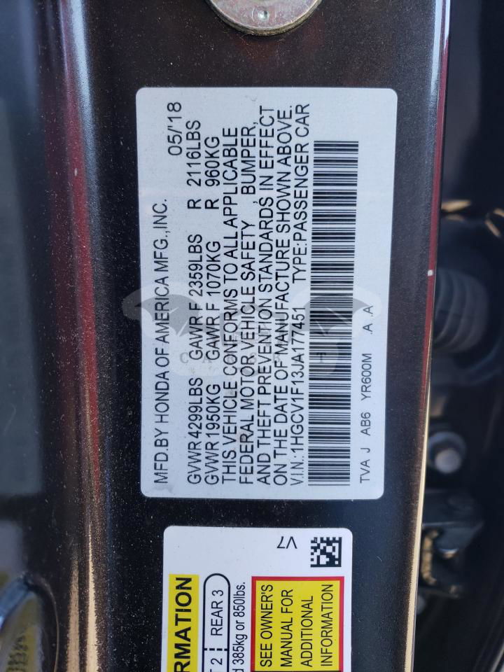 • VIN: 1HGCV1F13JA177451