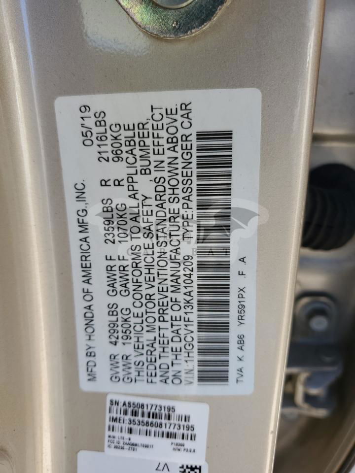• VIN: 1HGCV1F13KA104209