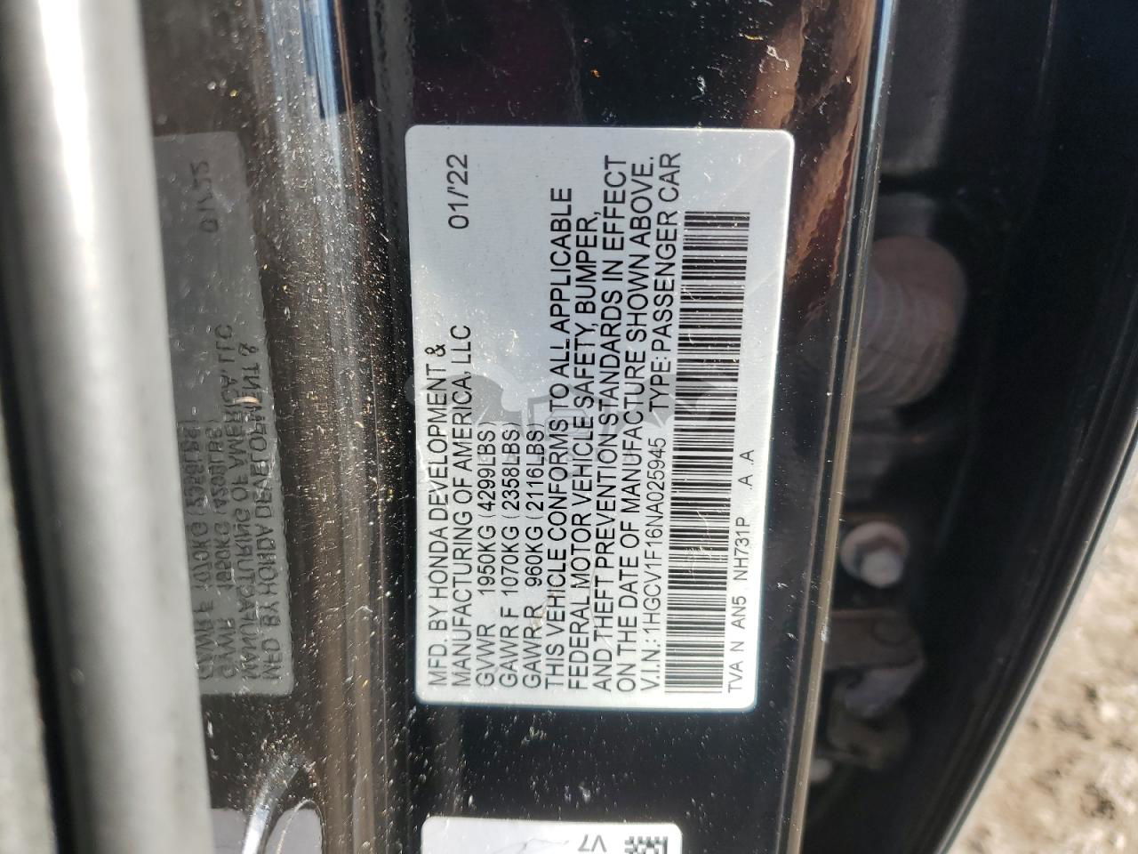 • VIN: 1HGCV1F16NA025945