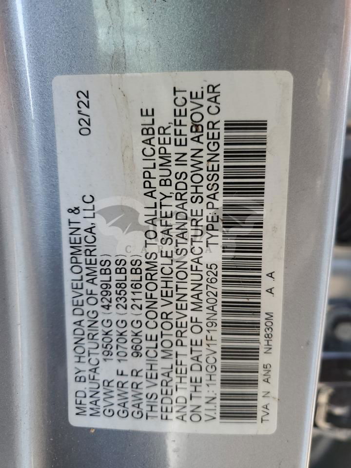 • VIN: 1HGCV1F19NA027625