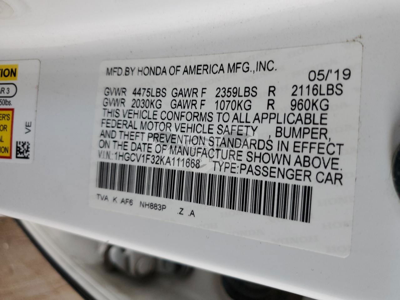 • VIN: 1HGCV1F32KA111668