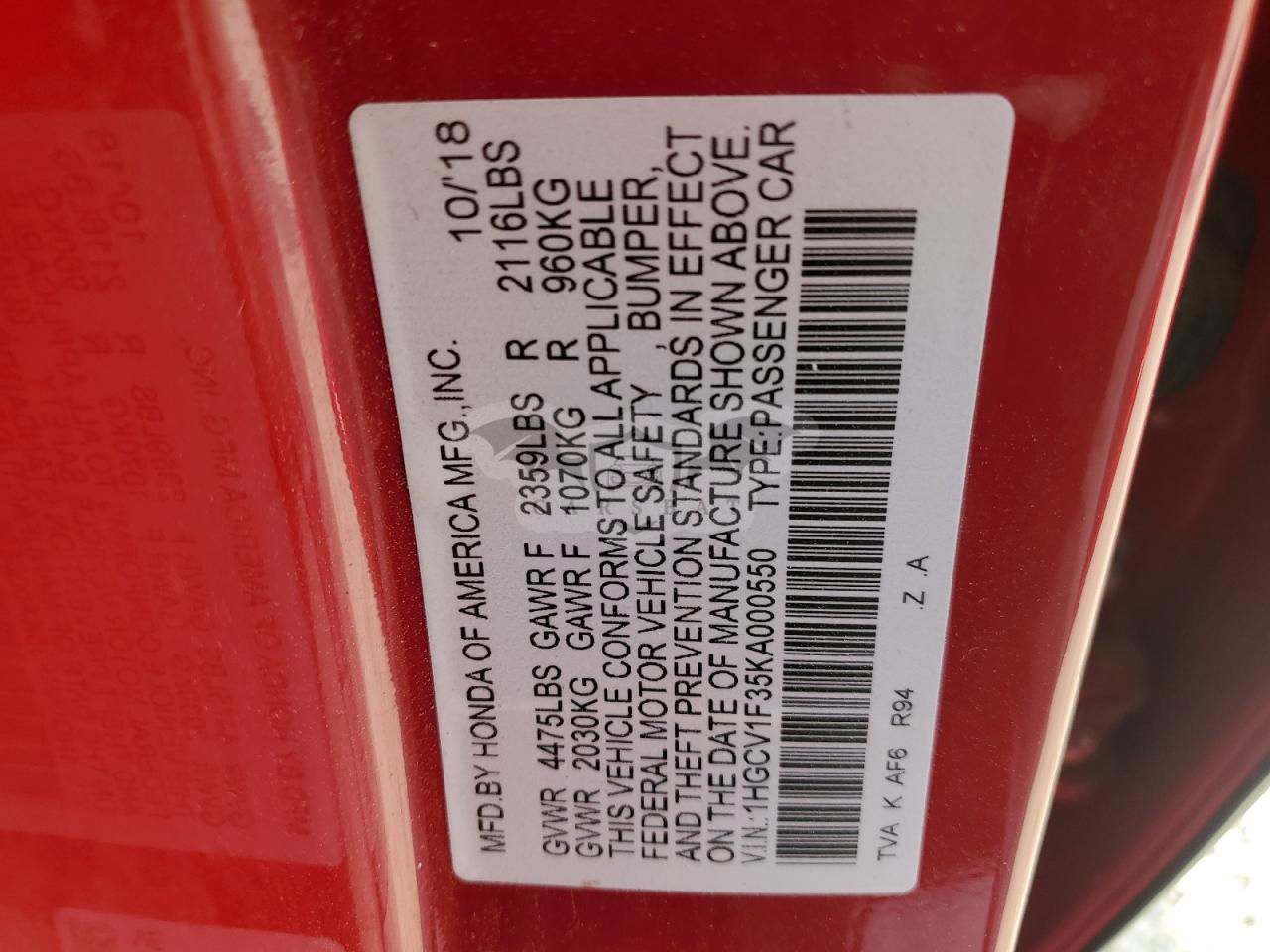 • VIN: 1HGCV1F35KA000550