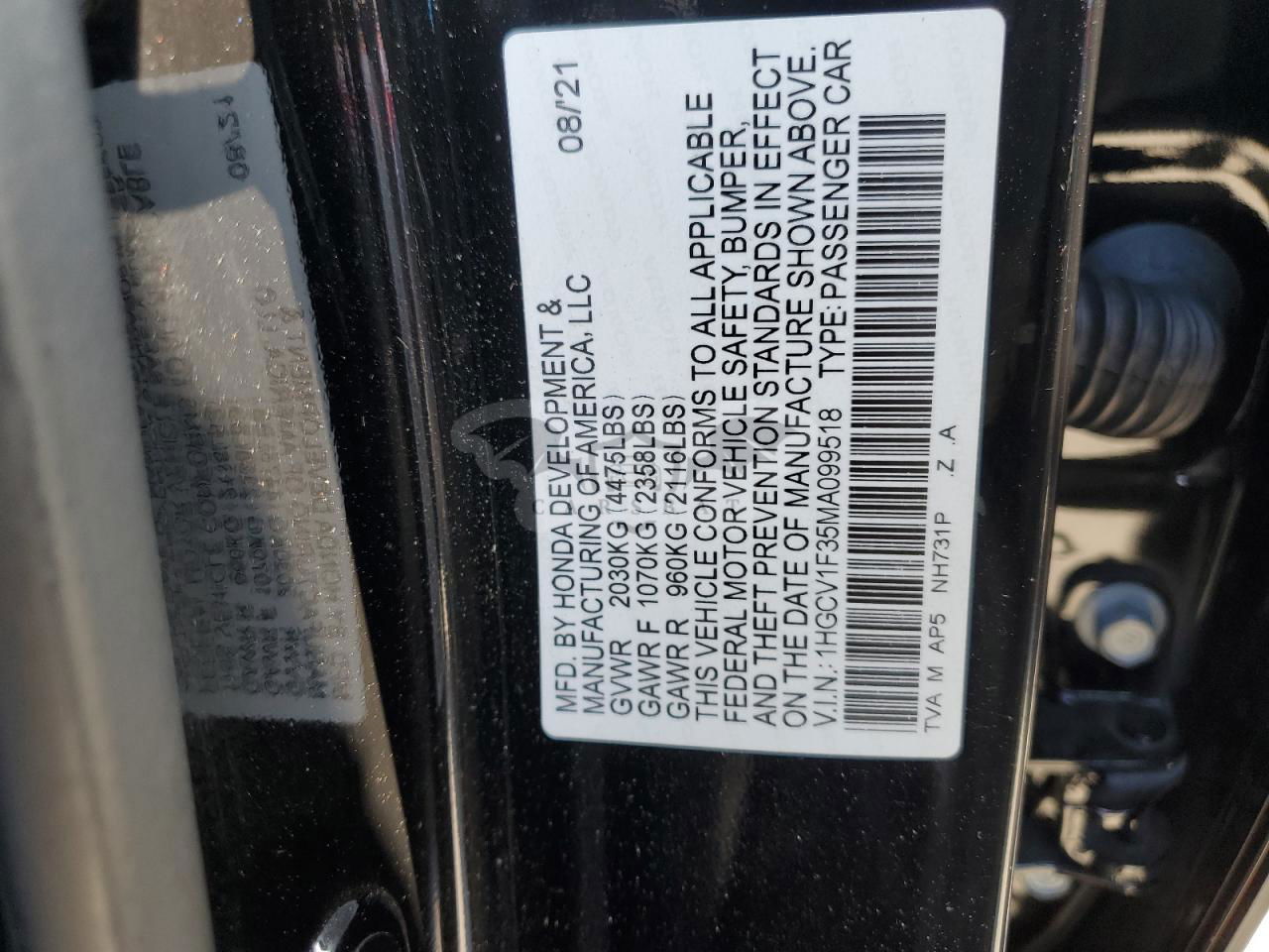 • VIN: 1HGCV1F35MA099518