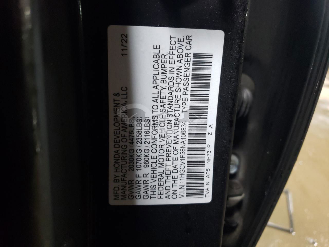 • VIN: 1HGCV1F36NA106834