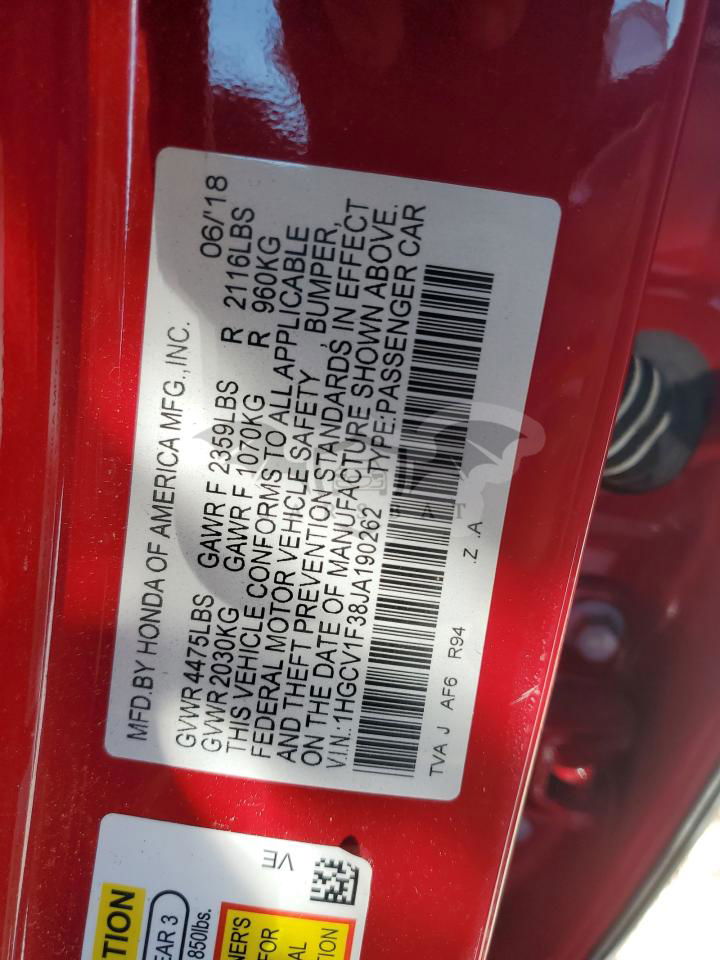 • VIN: 1HGCV1F38JA190262