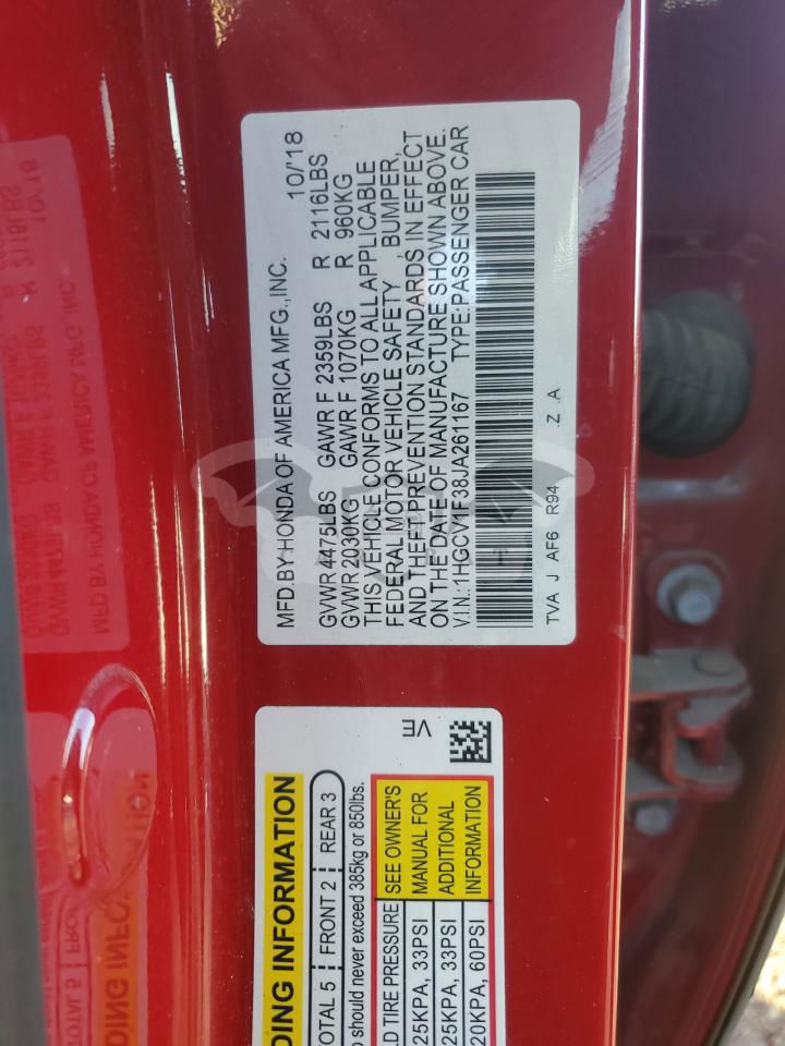 • VIN: 1HGCV1F38JA261167