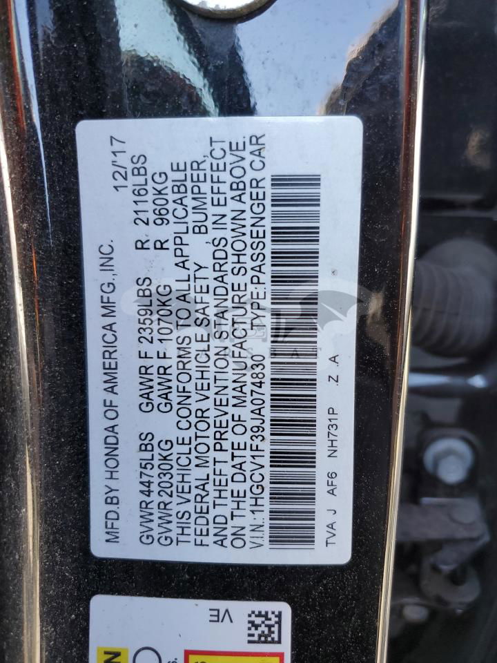 • VIN: 1HGCV1F39JA074830