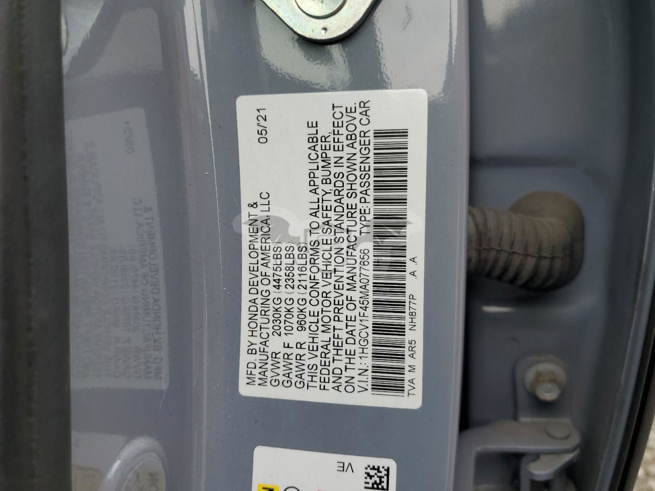 • VIN: 1HGCV1F45MA077656