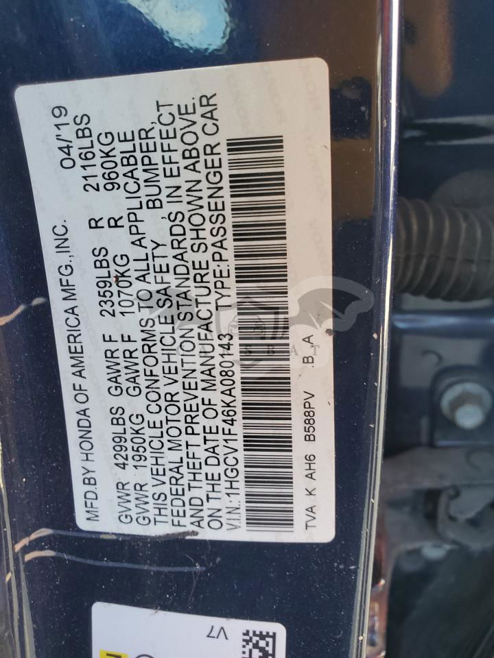 • VIN: 1HGCV1F46KA080143