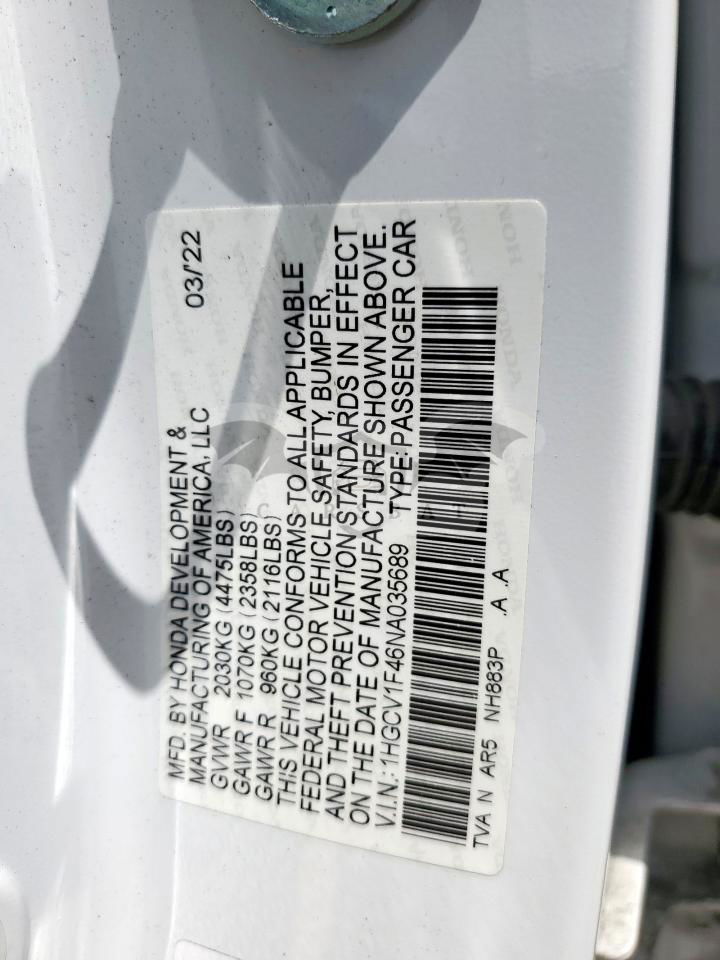 • VIN: 1HGCV1F46NA035689