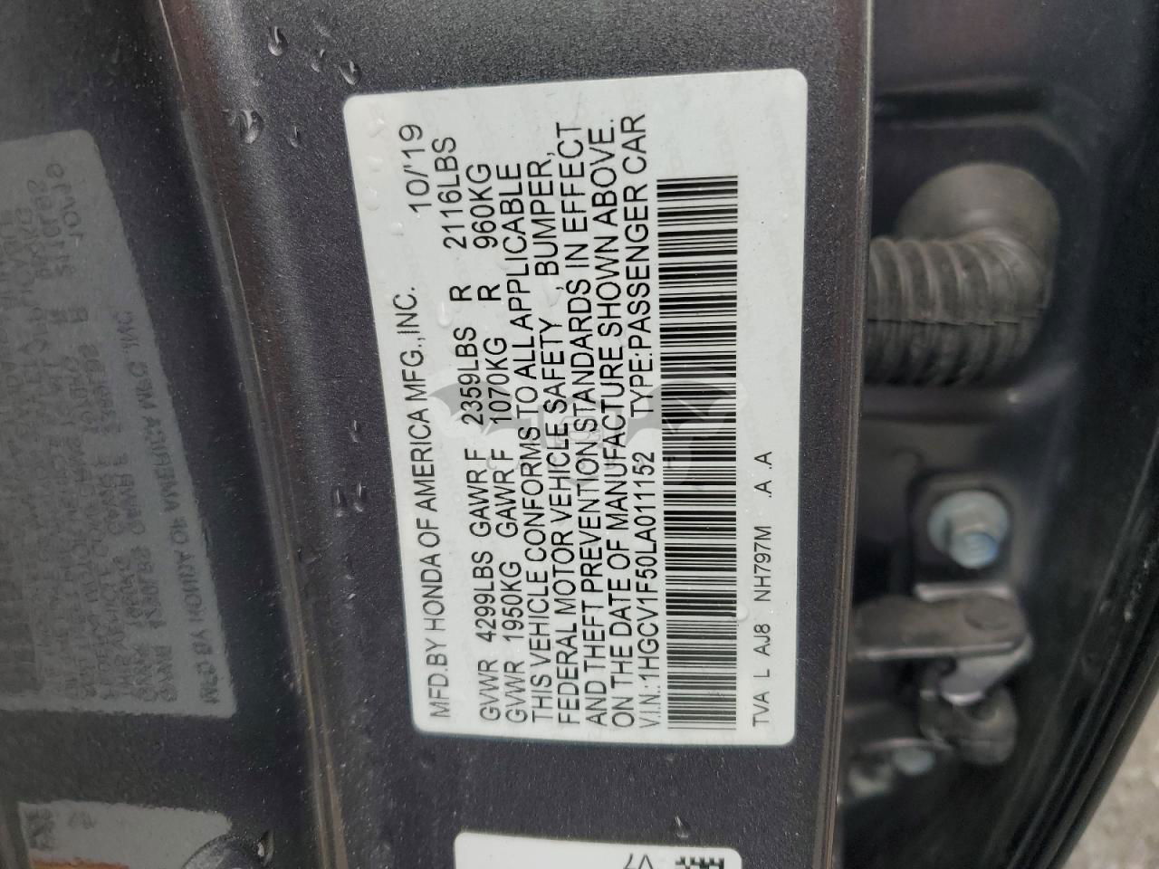 • VIN: 1HGCV1F50LA011152