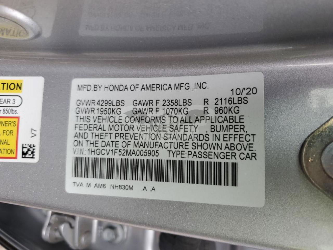 • VIN: 1HGCV1F52MA005905