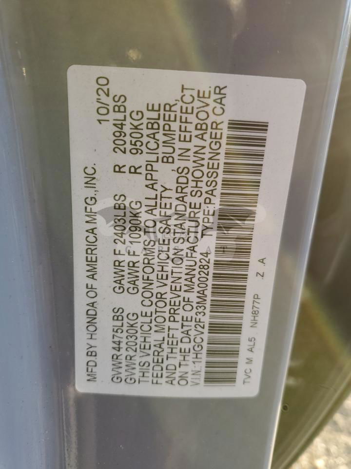 • VIN: 1HGCV2F33MA002824