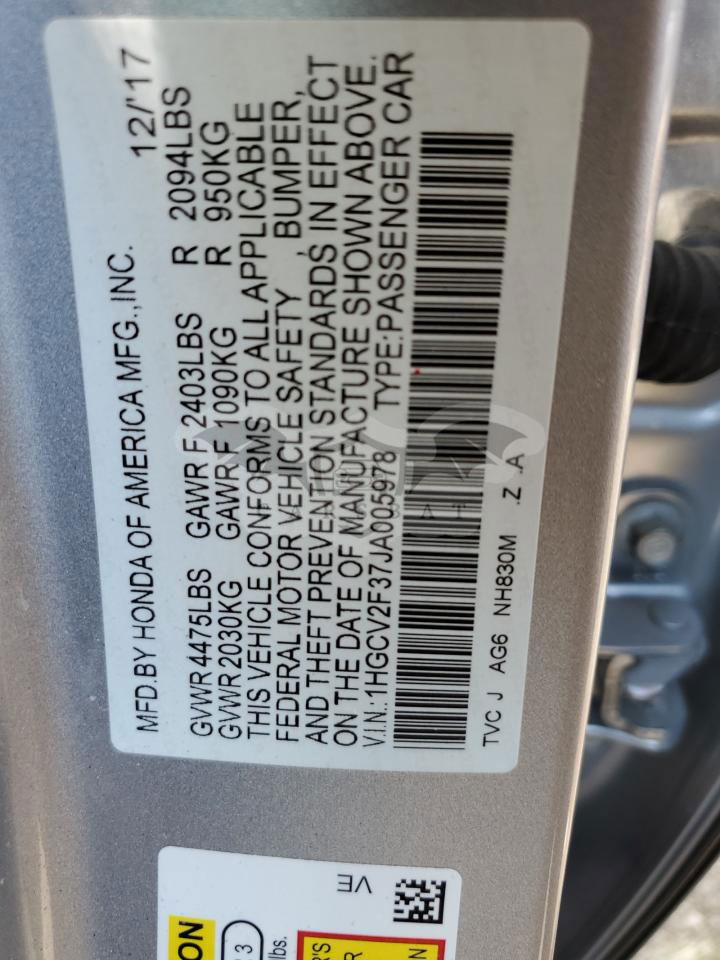 • VIN: 1HGCV2F37JA005978