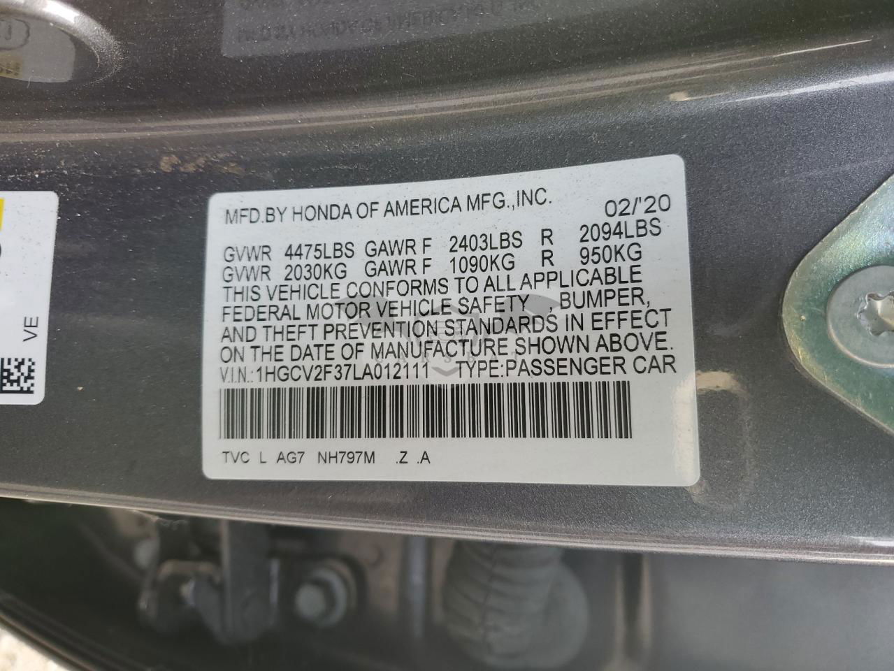 • VIN: 1HGCV2F37LA012111