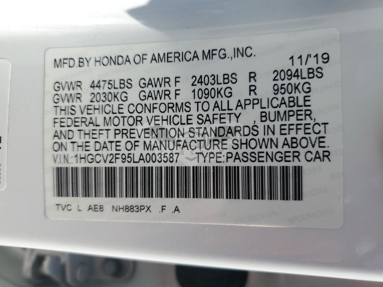 • VIN: 1HGCV2F95LA003587