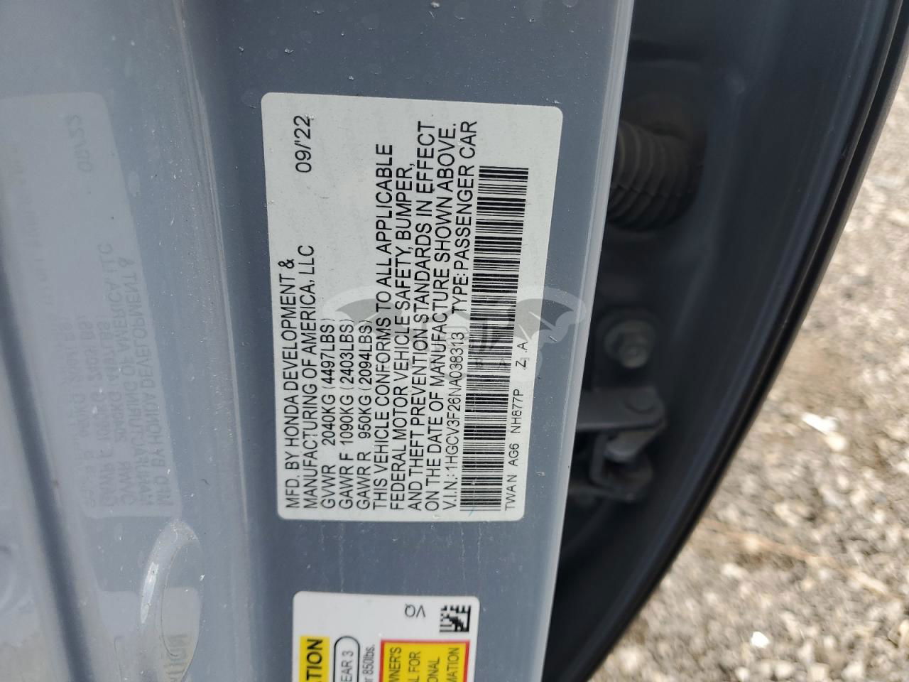 • VIN: 1HGCV3F26NA038313