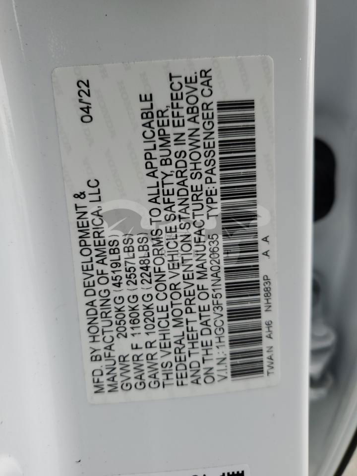 • VIN: 1HGCV3F51NA020635