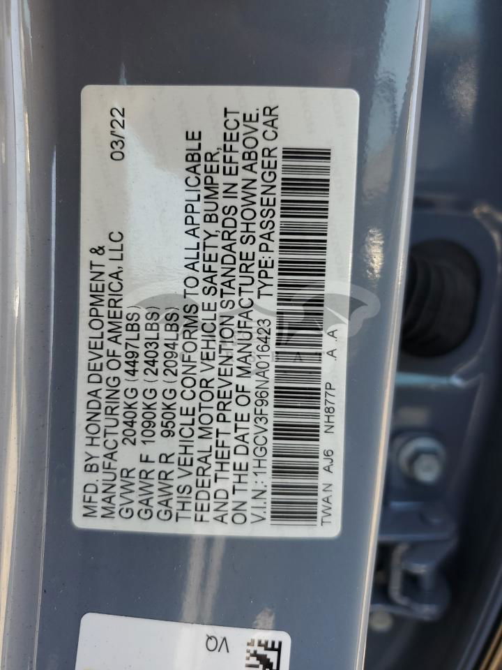 • VIN: 1HGCV3F96NA016423