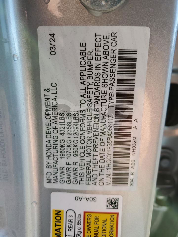 • VIN: 1HGCY1F35RA056117