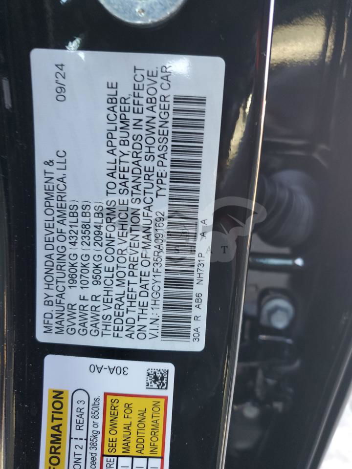 • VIN: 1HGCY1F35RA091692