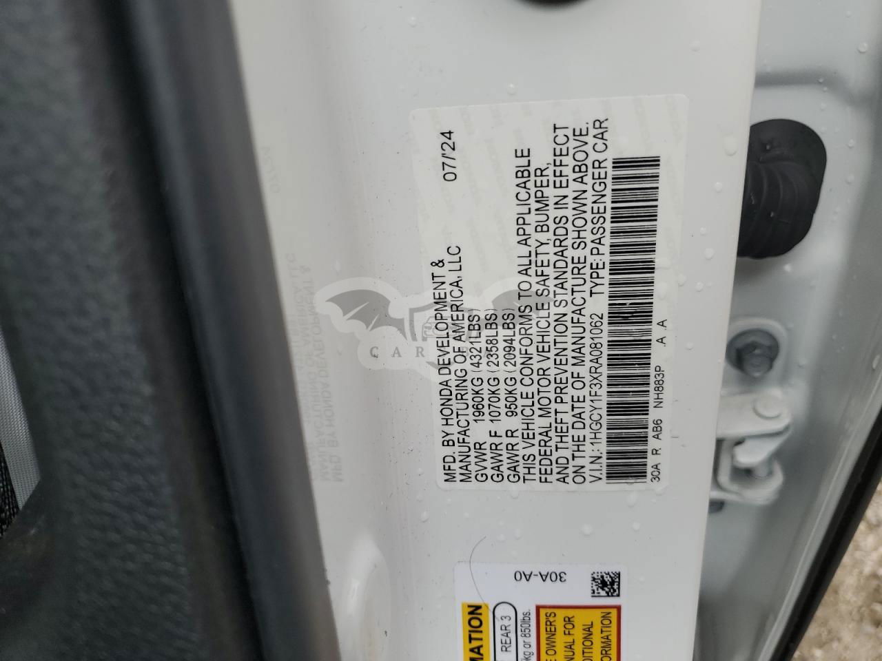 • VIN: 1HGCY1F3XRA081062