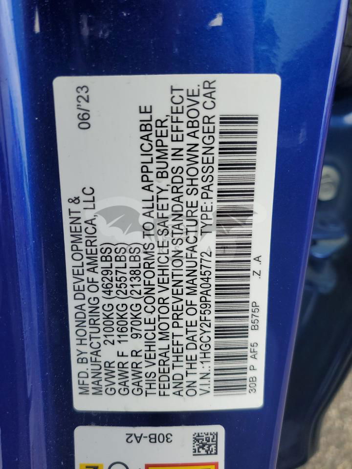 • VIN: 1HGCY2F59PA045772