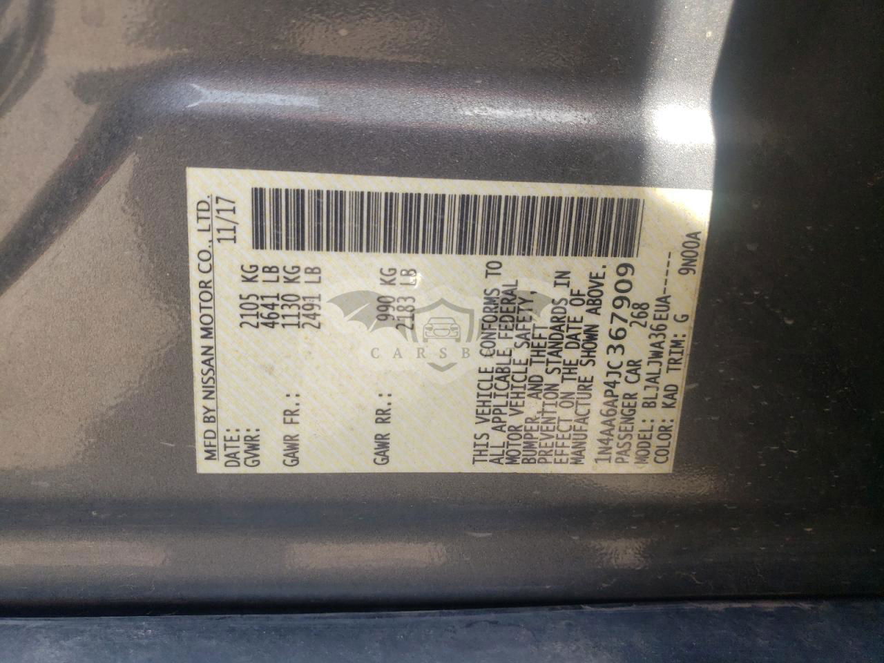 • VIN: 1N4AA6AP4JC367909