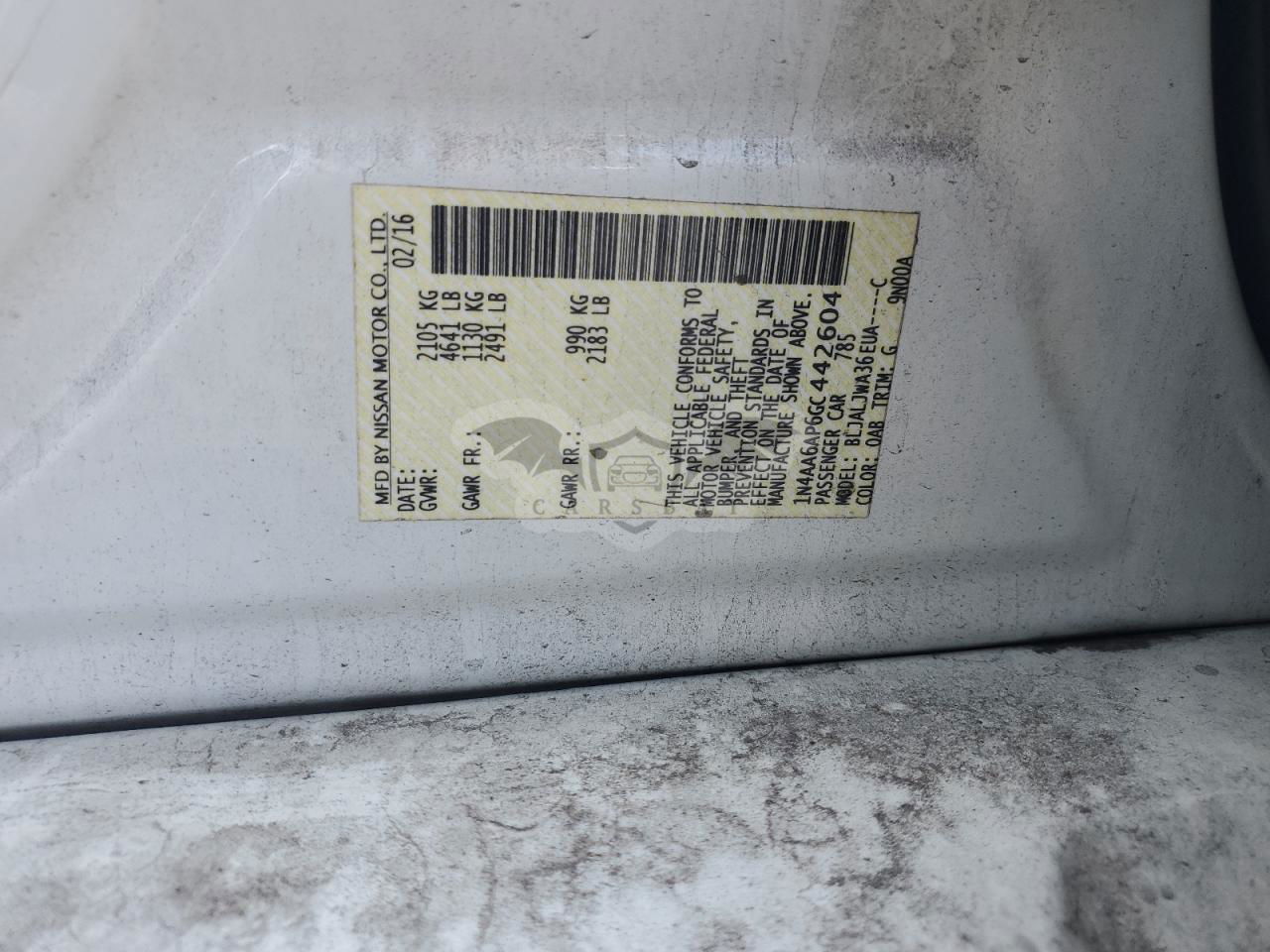 • VIN: 1N4AA6AP6GC442604