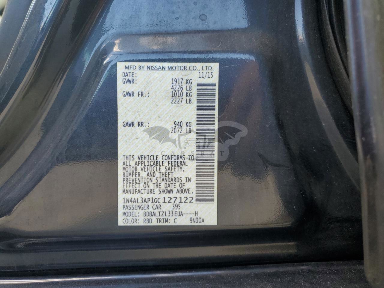 • VIN: 1N4AL3AP1GC127122