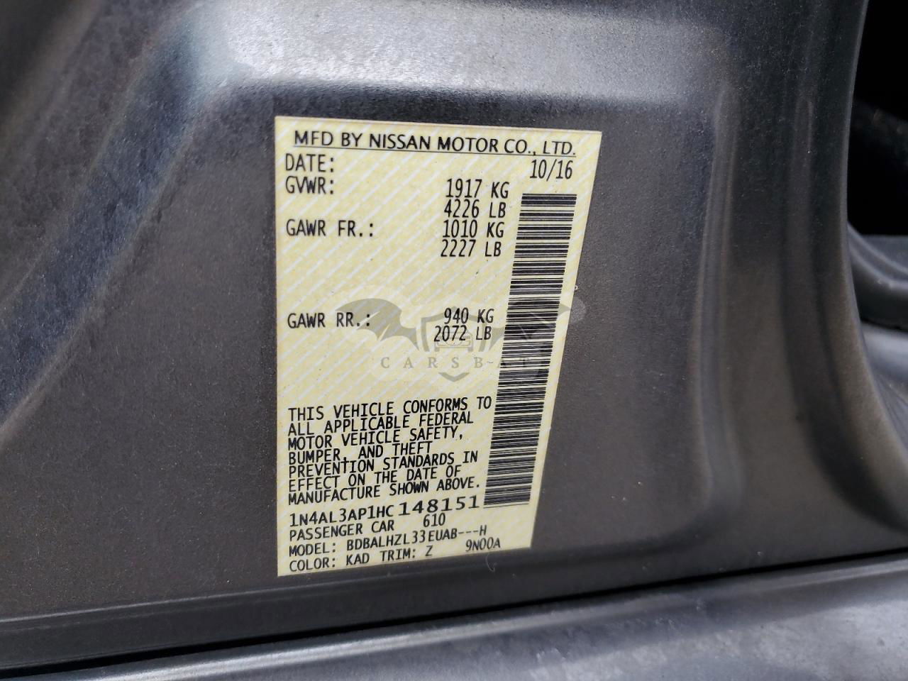 • VIN: 1N4AL3AP1HC148151
