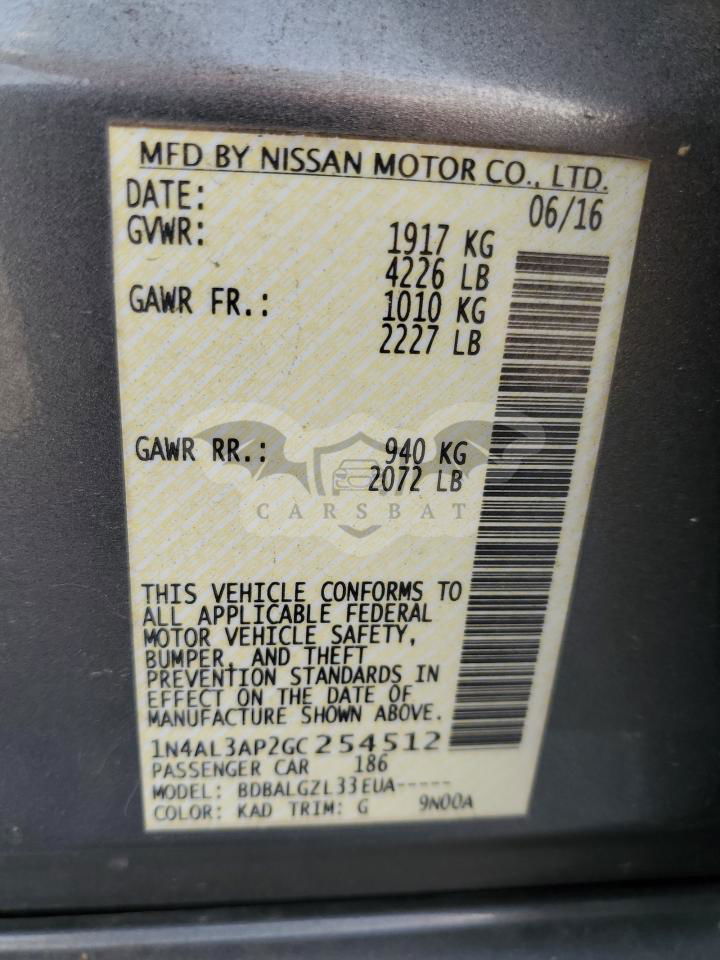 • VIN: 1N4AL3AP2GC254512